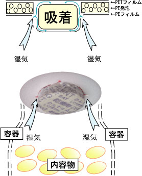 - 機能部分である品質保持剤の種類を変えることにより、乾燥、脱臭、脱酸素などあらゆる機能を持たせることが可能です。